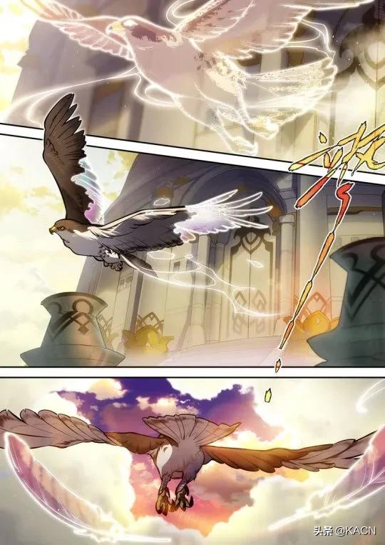 虽然漫画中显得要更神圣些,场景也不一样,不过漫画是在更早时出的,有些出入也正常,不过上篇帖子我提到的世界树就不攻自破了,但这棵树代表的可能还是用来选择神,给予神的责任的意义,在疑似温妮莎化身的鹰飞出后也能看到建筑外的花纹与彩蛋图上的有些许相像。