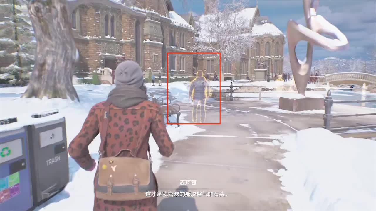 换好衣服之后出门来到校园,我们在去行政楼的路上可以看见雷吉在解一个puzzle,走过去拿起来先把puzzle翻到鸟的一面。