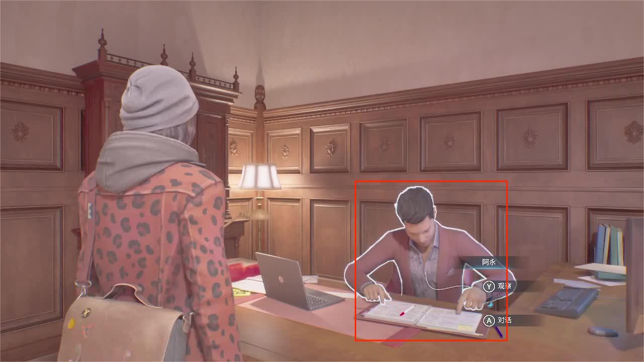 在这里我们看见了雅思敏的行政助理阿永,我们需要帮他找到包裹,这个时候隔壁的格温也在大发雷霆,我们先去格温那里。