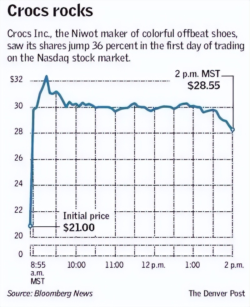 这个引领了全球洞洞鞋潮流的美国科罗拉多州鞋履品牌有多牛,早在2006年2月在纳斯达克上市时,就创下了鞋类企业首次公开招股的首日股价上升最高纪录。