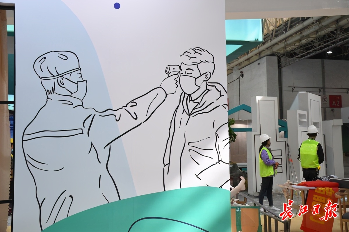 (图为测温的场景“移”到了展板上。 记者詹松 摄)