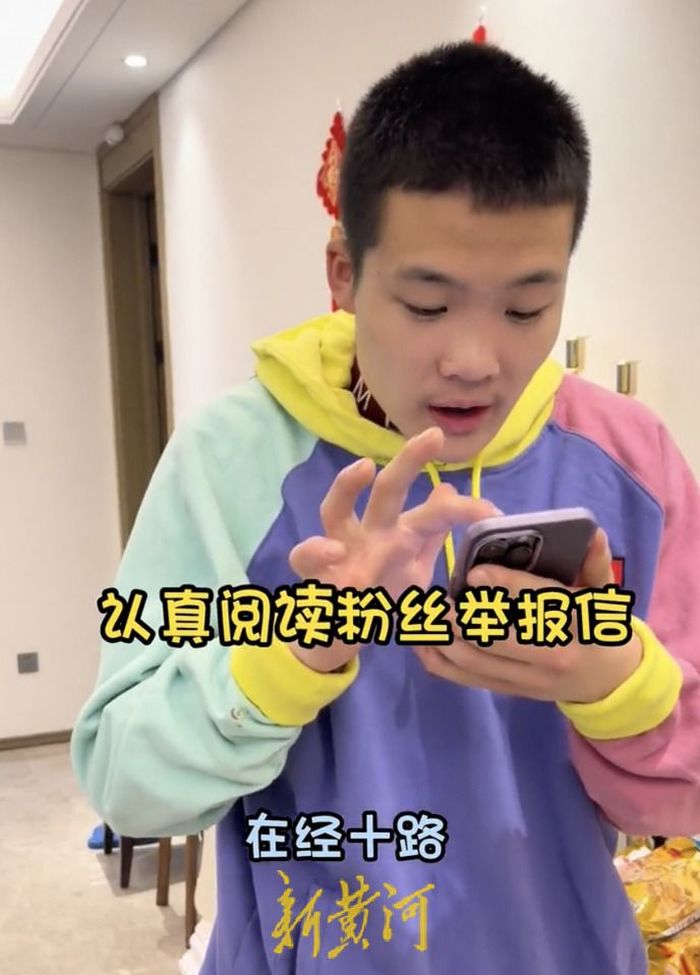 “今天高乐文在经十路快车道上骑着自行车逆行了……”视频中的乐乐正拿着手机逐字逐句阅读粉丝的私信“举报”。认识乐乐的本地粉丝对乐乐的安全都格外上心,在公园湖边玩耍、在主路逆行……随着乐乐的粉丝越来越多,乐爸、乐妈经常会收到“举报”电话。“逆行被爸爸骂了。”“那你以后要?”“遵守交通规则!”采访过程中,乐乐又找出因为粉丝“举报”他逆行被爸爸教育的视频,乐爸不断地重复以上的话训练乐乐,让他加深印象。