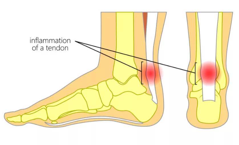 - 跟腱炎表现为足跟部上方、内部的疼痛、酸痛、压痛、僵硬,活动后加剧。它可能发生在跟腱的任何一区域,痛感通常会在清晨或者剧烈运动后的休息期间发作。