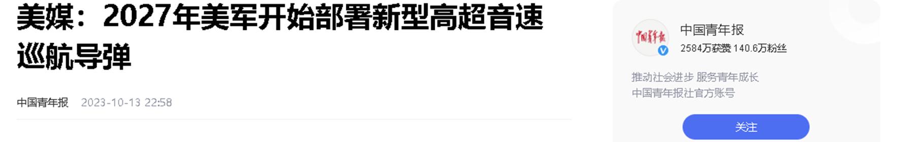 【1】中国青年报——美媒:2027年美军开始部署新型高超音速巡航导弹