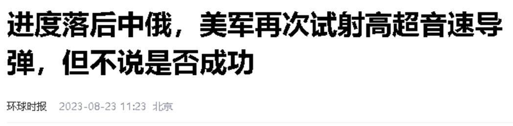 【2】环球时报——进度落后中俄,美军再次试射高超音速导弹,但不说是否成功