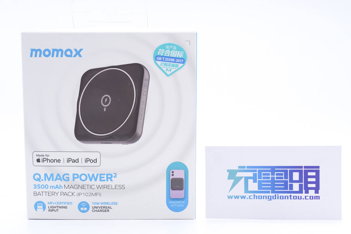 先上个对比图,上图中白色的部分是苹果30W PD充电器,下面就是今天要介绍的来自MOMAX摩米士,型号为IP102MFi的磁吸无线充电宝,下面进入正题部分。