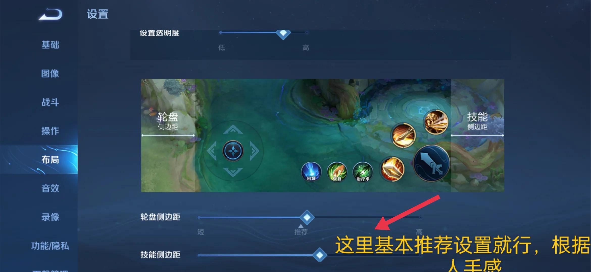 技能轮盘灵敏度作者是设为最高,根据英雄来设置。 技能取消保护为系统默认就行,