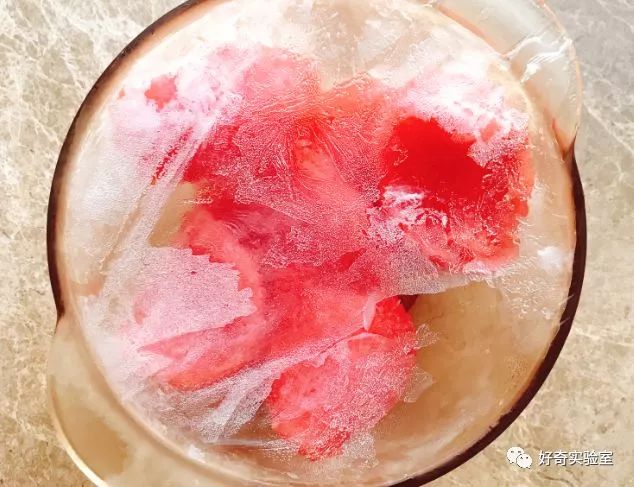 拿出来之后,碗上面居然结了薄薄的冰,这水分是西瓜散发出来的?瓜肉球也是硬硬的了,吃一口,乖乖,这才是真的冰啊,比普通的冰棍更凉,牙齿都有些受不住,一口下去整个人都清醒了不少。