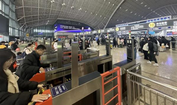 旅客在武汉站有序进站。