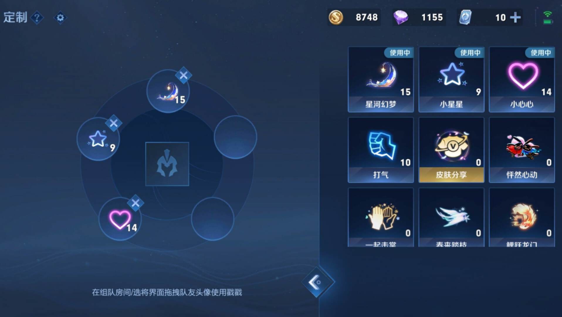 个性戳戳是一个非常有意思的,可以在组队房间选将界面拖拽队友头像的时候使用。