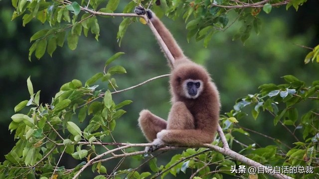 最后一个,类人猿就不介绍了,照照镜子就好,除了我们这种全身没毛的猴子和各种猩猩表兄以外,类人猿当中还有长臂猿类,它们可能是在树上获得实在太滋润了,把本来应该点脑子的科技,全部点到了手臂上……
