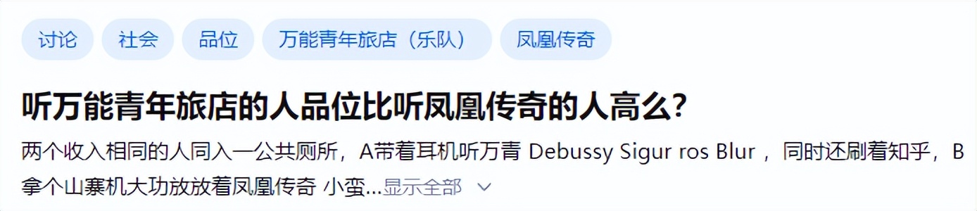 知乎上曾有一个讨论很广的问题:万能青年旅店乐队和凤凰传奇谁更高?