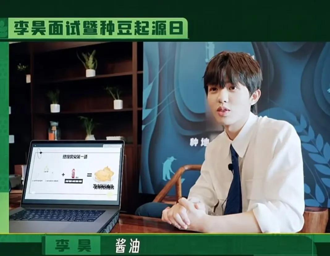 李昊是因为做一个PPT,一个长着少年脸穿着成熟的职业西装,拿几十页PPT讲这要种黄豆酿酱油作酱油鸡,导演觉得他很有想法而入选。