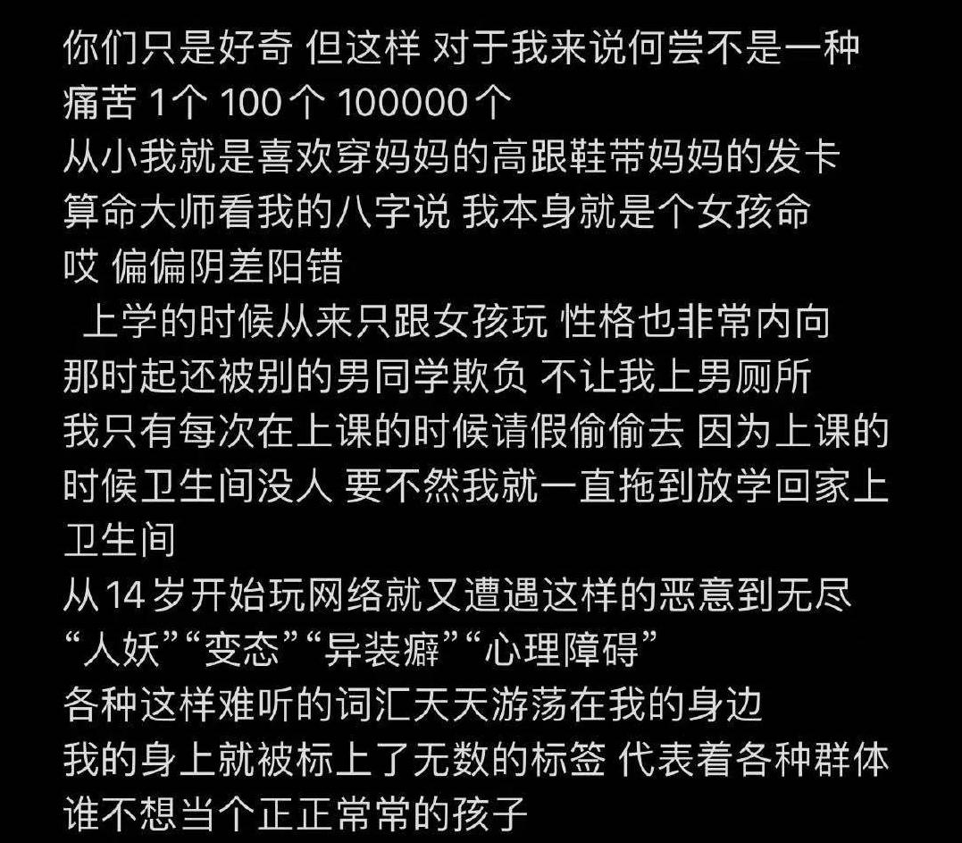 网红艾比自曝转性成功,发长文回应进女厕所来生理期,信息量大