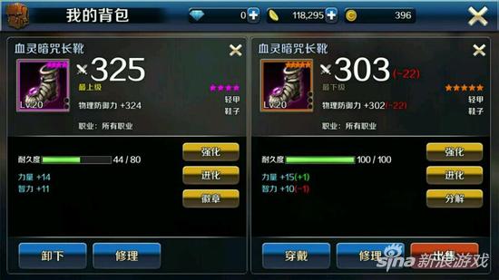 4、装备进化:可以讲低级的装备进化成高级的装备。