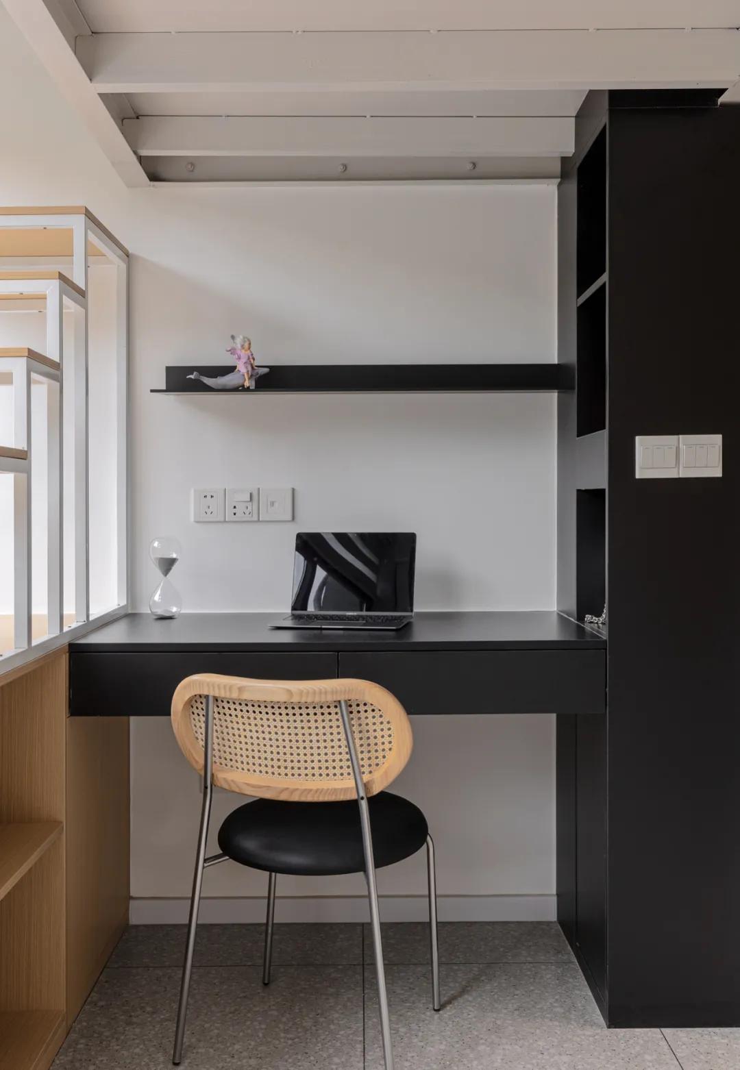 为了能更好地利用3米层高的优势,我们在临窗区域搭建出二层空间作次卧使用,下方预留1900mm的层高,新增书房办公区,四舍五入增加了“两间房”。