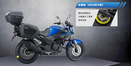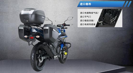 配置:电子仪表盘、国际5档、单拉线油门、带SHAD三箱、挡位显示、前转向灯卤素灯&后灯LED、标配危险警示灯(双闪)、前后碟刹盘式制动。