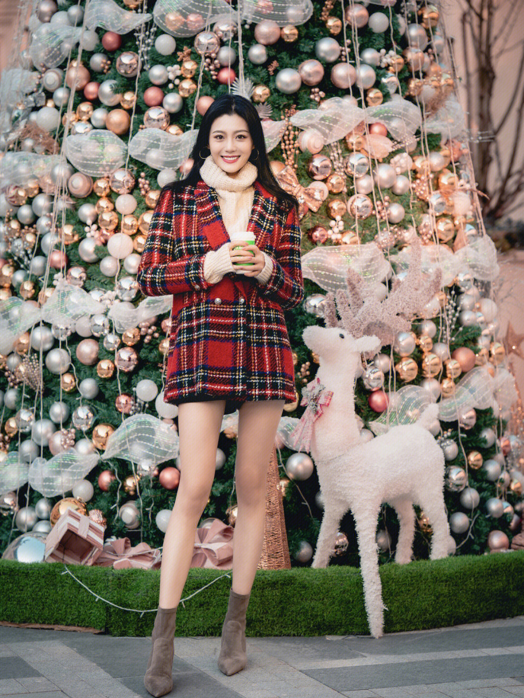 内搭一件高领的毛衣,完全让你变成百变女王,看着更加高级,不过这位博主选择下半身失踪的穿搭技巧,展现大长腿优势,串门可能不太合适,但是过年越闺蜜聚会逛街可能是不错的选择,毕竟穿起来很漂亮。