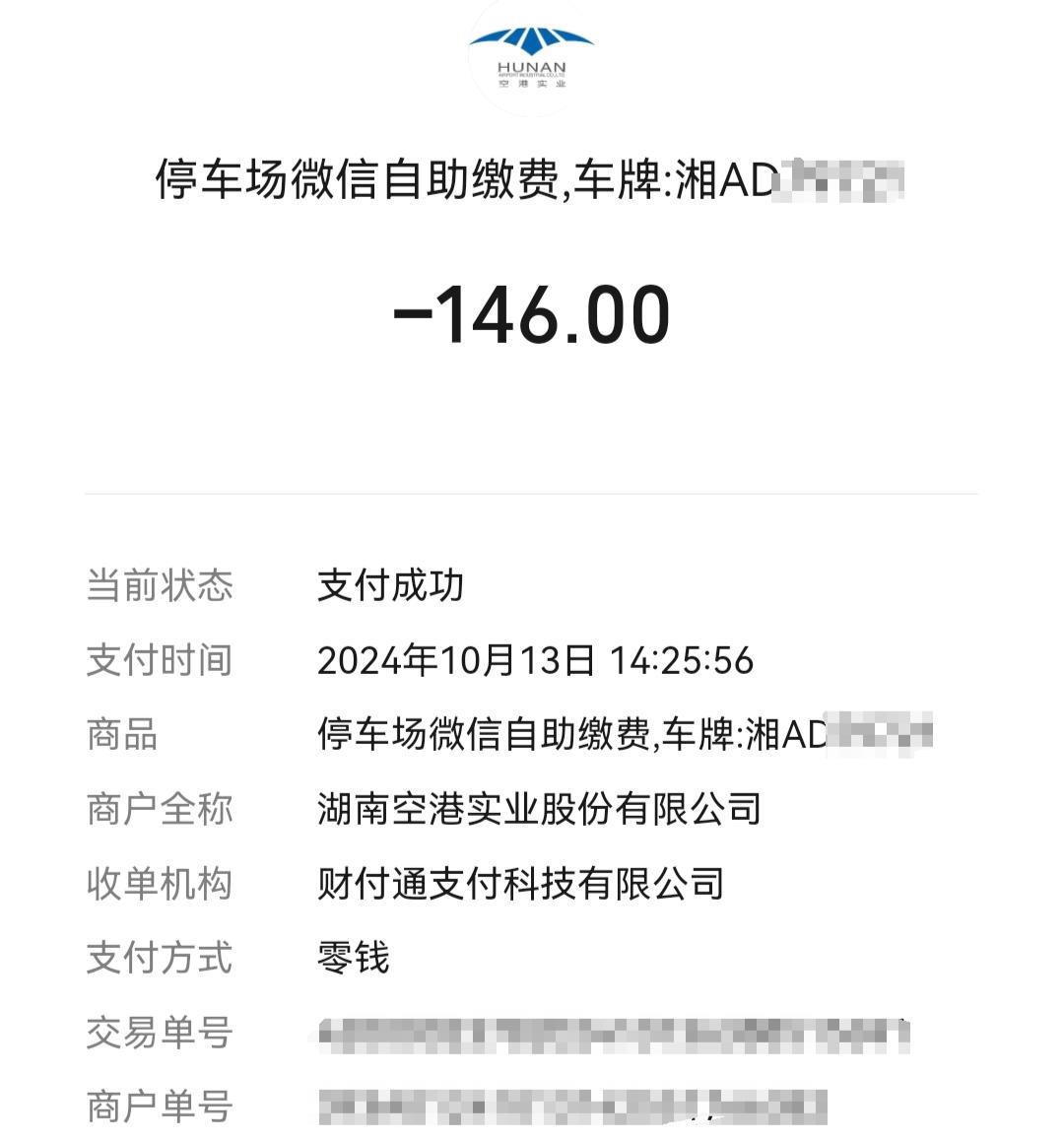 刘先生介绍,因出差需要,他在10月9日通过小强停车微信小程序,提前预定了10月10日至10月13日长沙黄花机场停车服务,并正常缴纳了102元费用。