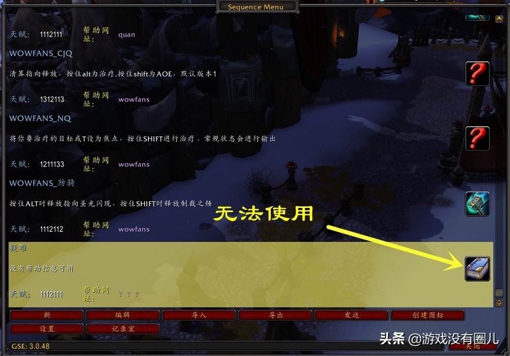 在创建魔兽GSE一键宏、重新命名现有GSE一键宏时,宏图标会变成一本书的样式,根本无法使用,更无法放置到快捷栏中。如图: