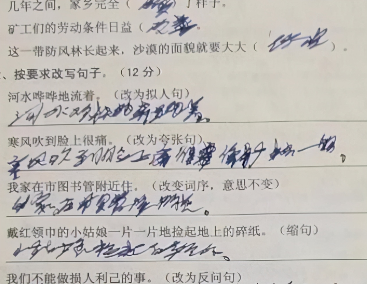 蜘蛛字体,比蜘蛛网还凌乱。会写这种字体的学生,起初估计是嫌作业太多,时间太少,为了加快速度,但是当习惯这样写之后,就很难写出能帮你拿分的字体了。