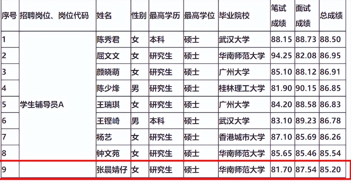 张小姐的原名叫做张某婧某,是华南大学的硕士出身,2014年毕业。她自参加工作之后,从广东交通职业技术学院学生辅导员一职一路披荆斩棘,走到了学校团委副书记的位置上。