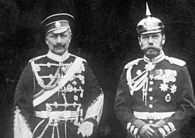 首先威廉二世的妈和乔治五世的爹是姐弟,威廉二世是乔治五世的表兄。