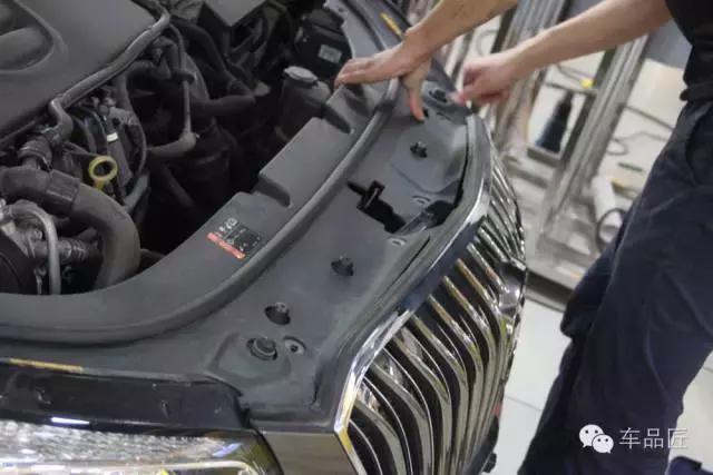 4.别克君越车型比较紧凑,铺设前摄像线路时需要松开前保险杠部分螺丝以及卡扣。