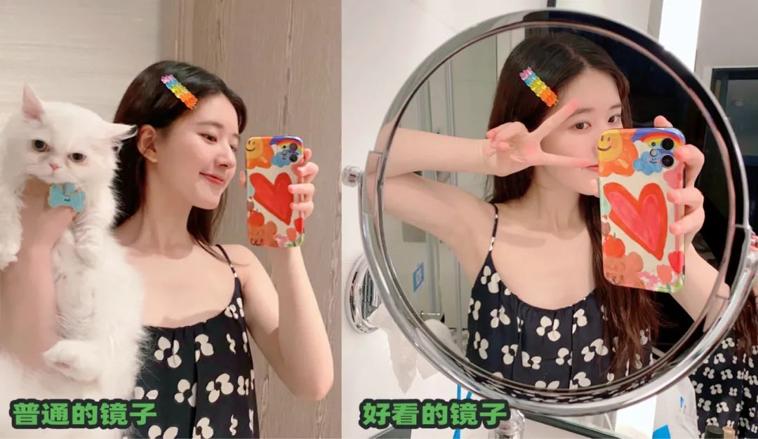 镜子不仅仅是自拍的工具,也是绝佳的装饰,一面好看的镜子,可以很大程度上增加构图的美感