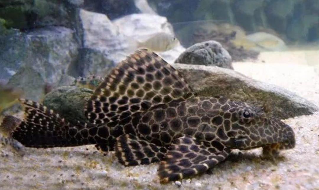 清道夫的学名叫做豹纹脂身鲇,也叫琵琶鱼、吸盘鱼、腰宝鱼等等,属于鲶鱼科,至于豹纹则是指它身上的花纹和豹纹极为相似。一般全身是灰黑色,其中还有黑白相间的花纹,看起来灰扑扑的,不怎么漂亮。我们之所以总在观赏鱼鱼缸当中见到它,是因为它喜食水族箱当中的污染物,可以净化水质,是一名蛮优秀的“清洁工”,当然这仅限于在水族箱当中。