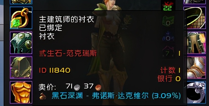 装等最高的一件衬衣,物品等级60,虽然并不被计入插件装等,但还是相当有面子。