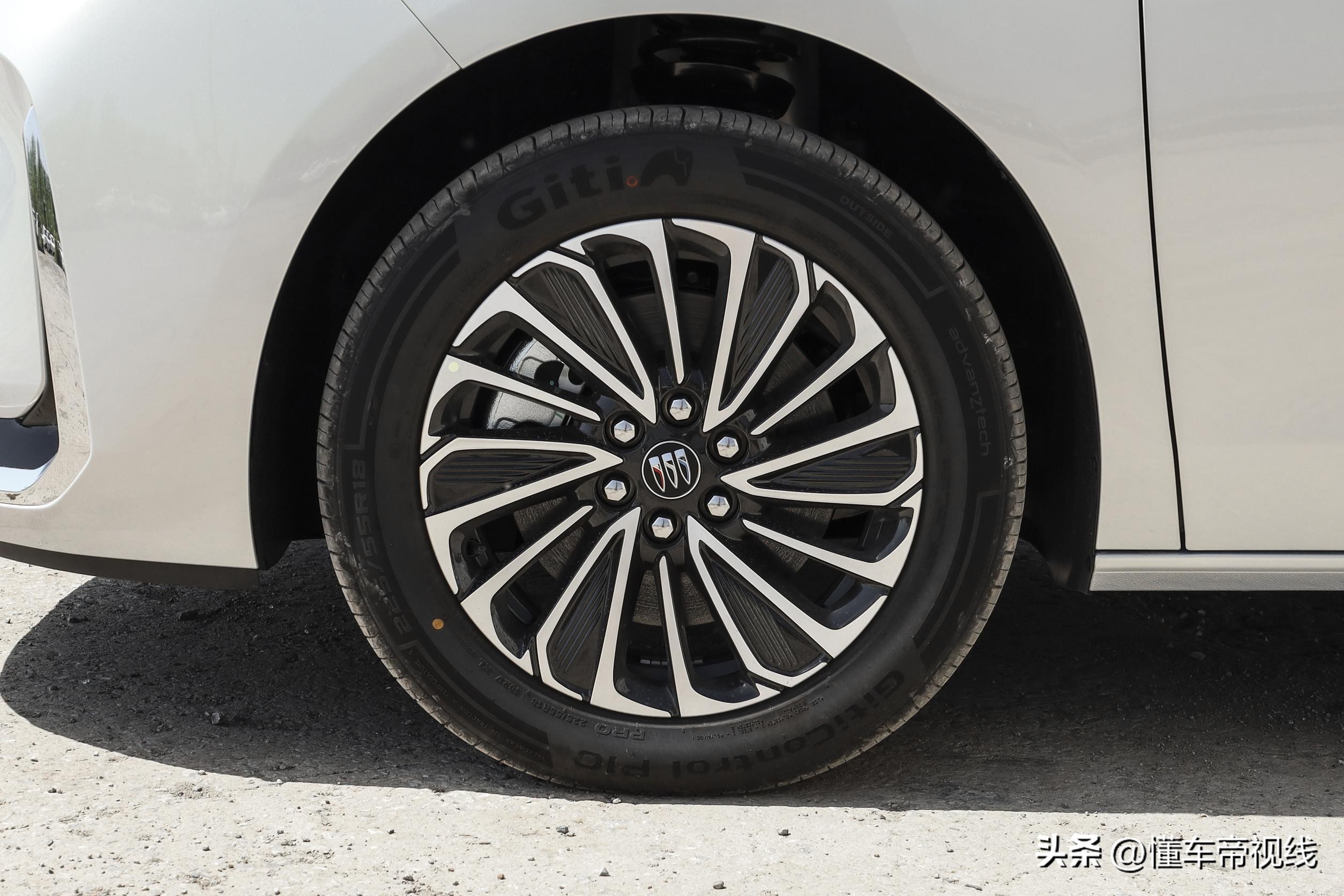 别克GL8陆尚的车身侧面使用黑化处理的B/C/D柱设计,提供后排隐私玻璃,整体具有悬浮式车顶设计风格。轮辋方面,该车配备全新造型的双色密条辐表面切削处理亮面轮辋,轮辋尺寸为18英寸,轮胎尺寸为225/55 R18。