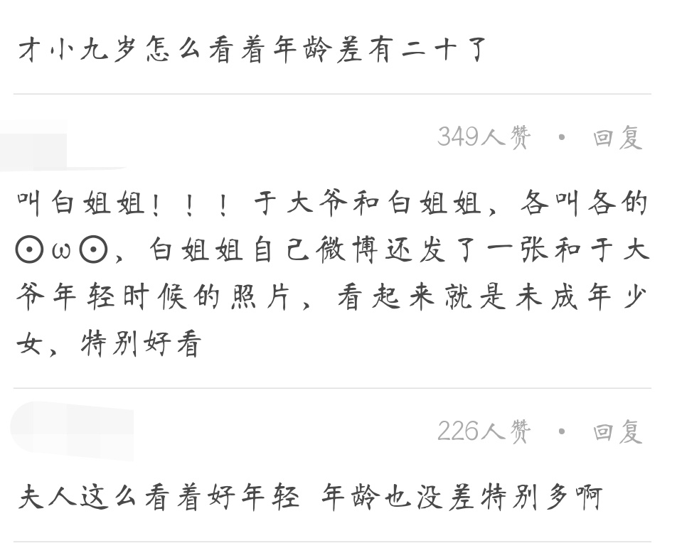 于谦则身穿一件白色T恤,啤酒肚微鼓,似乎发福了不少,皱纹也很明显。一对比,白慧明不仅被粉丝们叫做"白姐姐",还被人感叹这对夫妻"怎么看着年龄差有20",于谦带着妻子白慧明出现的画面还被网友形容为像是领着闺女。