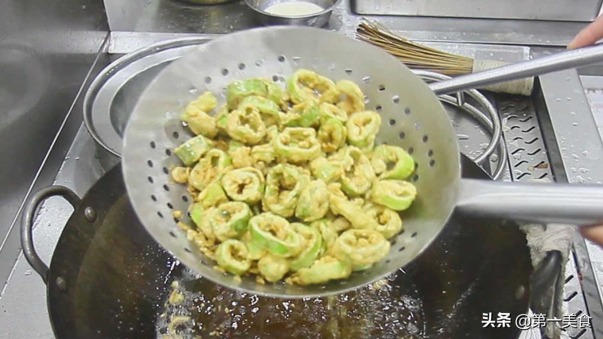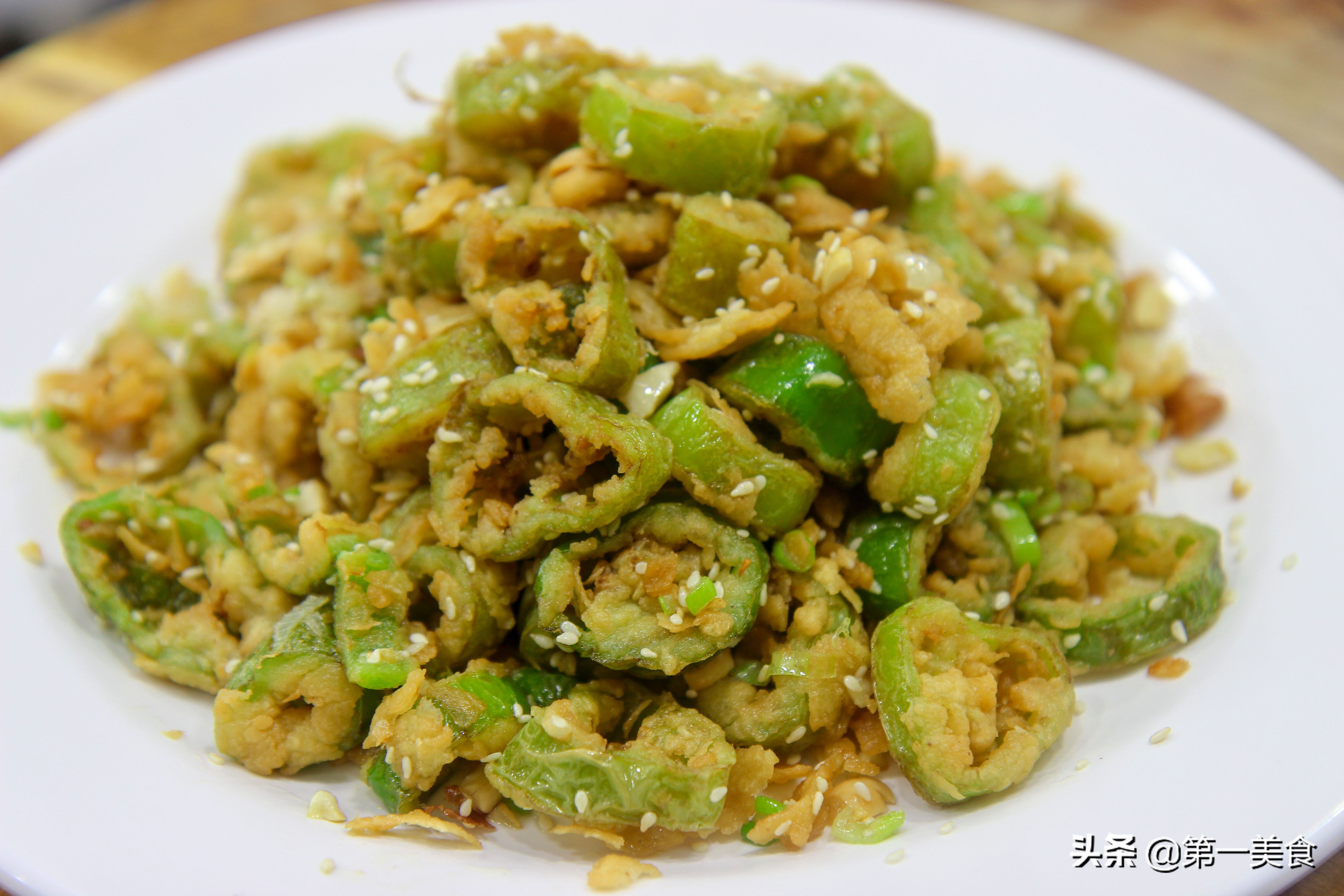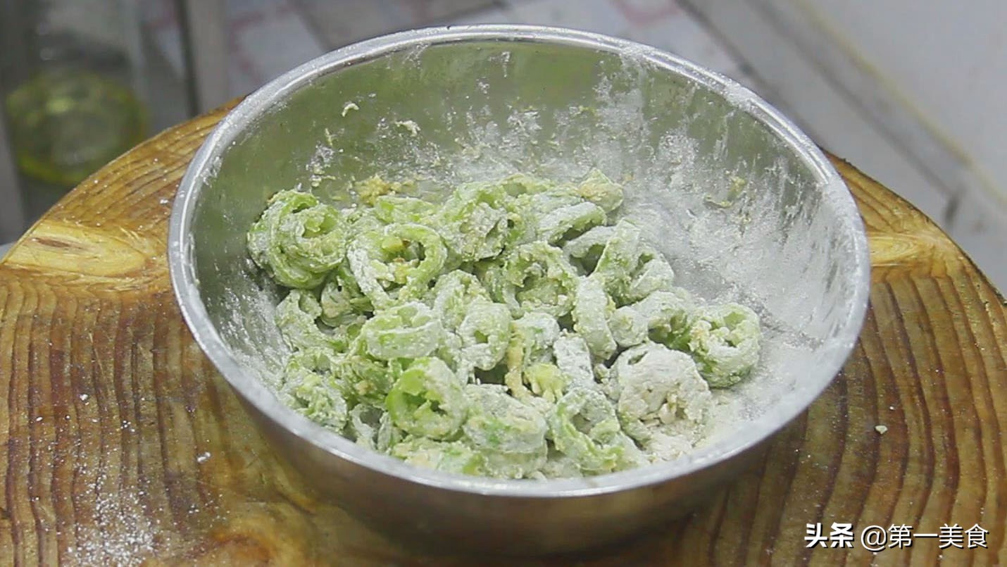 辣椒圈最好吃的做法,厨师长用面粉一裹一炸,口感酥脆,吃着过瘾