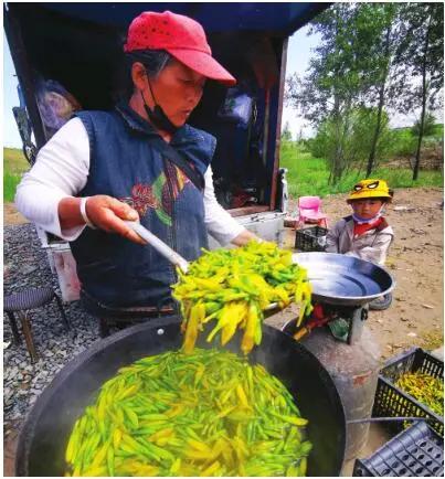 黄花之美,美在既饱眼福,又饱口福。很多人采花是为了观赏、为了拍照、为了自己家能炒顿黄花笨鸡蛋,但近日在杜尔伯特县固山贝子草原,记者却看到了很多附近村民,已经成为职业采花人。