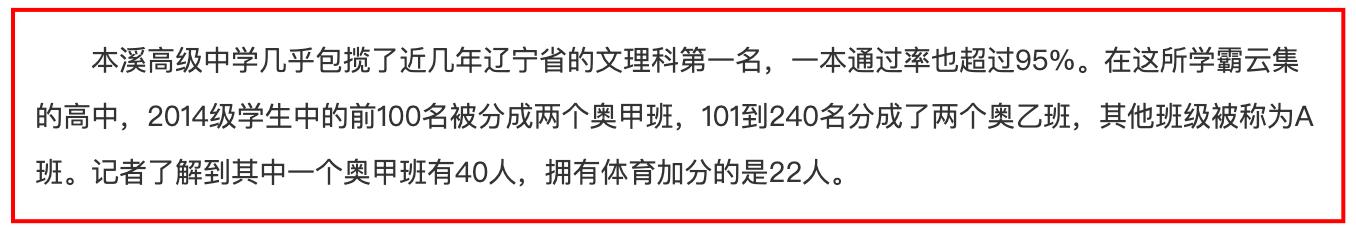当年本溪高中有两个尖子班,其中有一个尖子班有40名学生,其中有22名学生都获得体育加分,也就是所谓的体优生,比率超过50%。