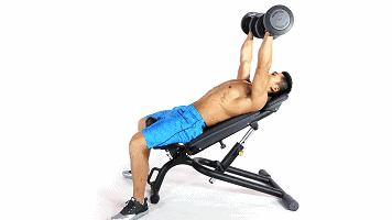 哑铃上斜卧推,跟杠铃上斜卧推类似,可锻炼到胸肌上半部!