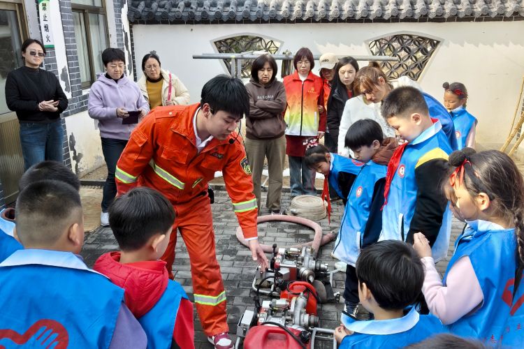 就餐结束后,孩子们排着整齐的队伍,来到原山林场消防站。一进入消防站,各种整齐摆放的灭火装备便吸引了孩子们的目光,他们的眼中满是好奇与兴奋。消防员热情地迎接孩子们,开始耐心地讲解各类灭火装备的知识。消防员拿起一件装备,详细介绍它的功能、使用方法以及在山林灭火中的重要作用,孩子们听得津津有味。