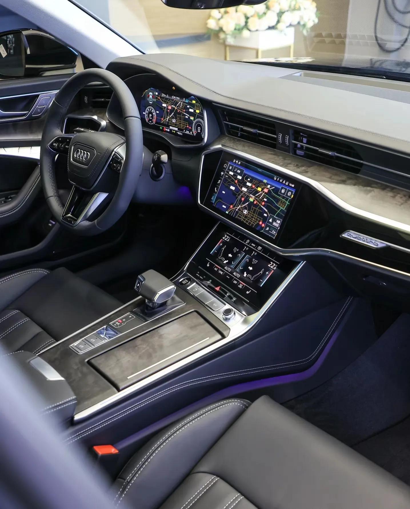 内饰方面,奥迪A6主打科技风格,采用了虚拟座舱的设计,让驾驶者宛如在驾驶一台战斗机。中控台采用简洁大气的设计风格,各个功能区域划分清晰。高清的中控屏幕、全液晶仪表盘以及三幅式多功能方向盘,无一不展现出奥迪品牌的科技实力。