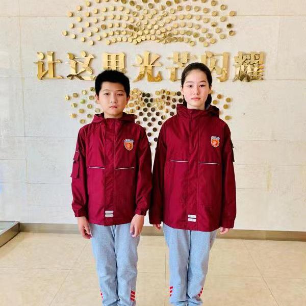 西安市未央区方新小学学生共有四套校服,分别是:运动服、夏装、冲锋衣和礼服。
