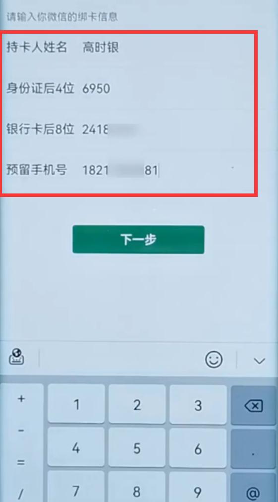 这时需要填写“申诉账号”的真实姓名、身份证号的后4位数、绑定的银行卡号的后8位数字、手机号。填写完成后,点击“下一步”,微信好友辅助验证的操作就完成了。