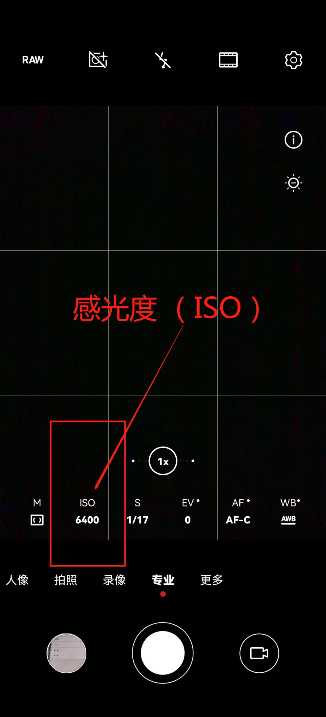 专业模式中的感光度