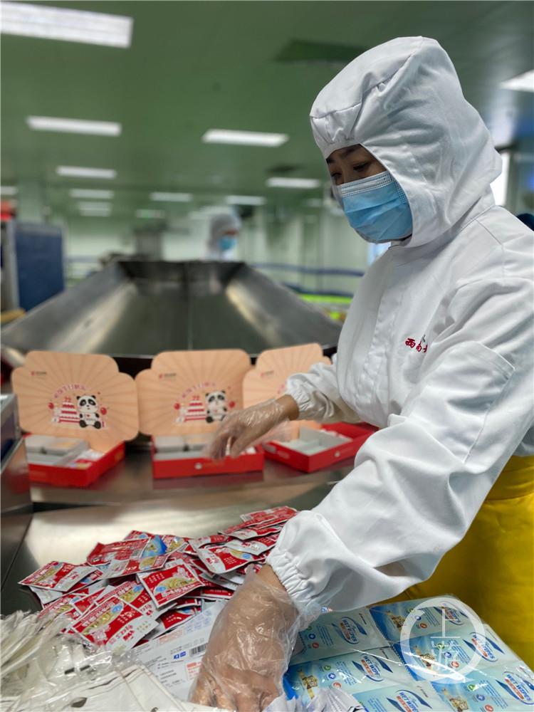 随后,上游新闻记者参观了西南航食分公司的生产流程。该航食生产项目占地面积101亩,总建筑规模4.7万平方米,建有配餐生产楼、机供品库、设备楼、污水处理站等,设计产能为日产3.5万份航餐,最大产能可达5万份,餐食种类包括中西热餐、冷餐、特殊餐、机组餐等。