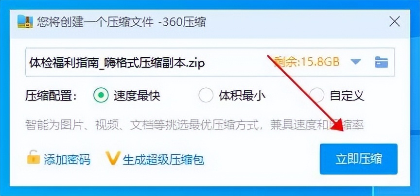 2、在压缩配置中按照默认配置,点击【立即压缩】按钮。
