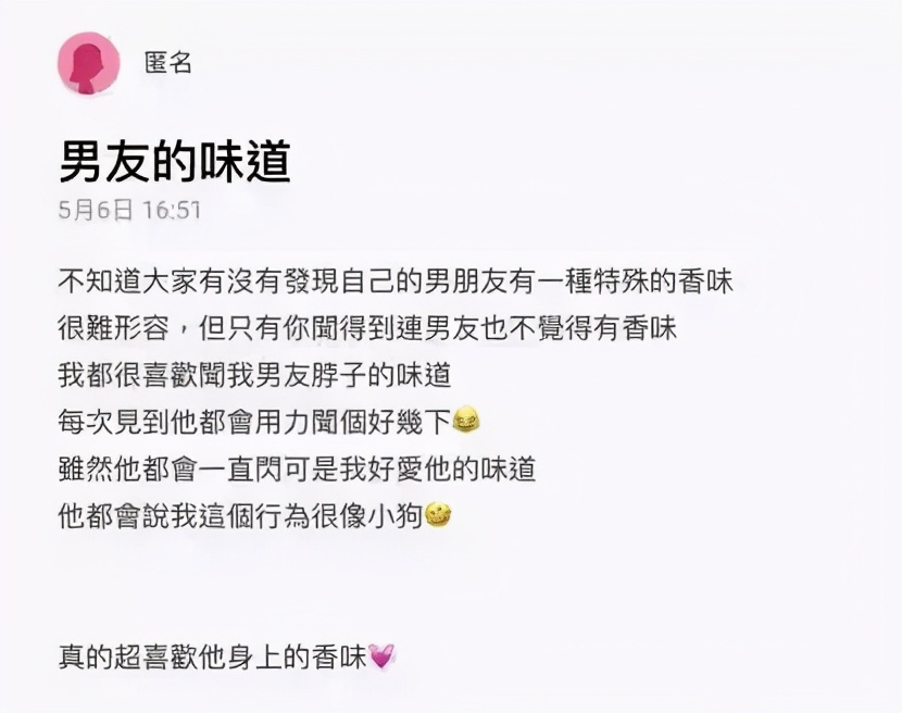 当然,情侣之间觉得对方身上好闻,也有可能是自带气味滤镜。