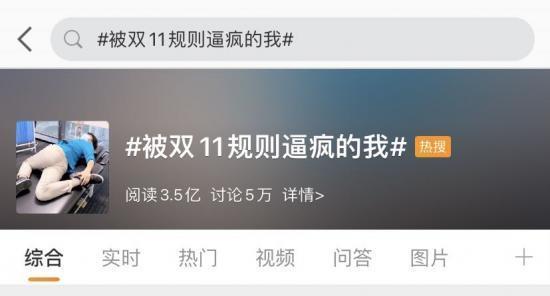 关于双十一的话题也多次冲上微博热搜。其中,#被双11规则逼疯的我#这一话题热度持续高涨,一条高赞的网友评论是这样的:每年双十一都像一场考试,题目看似图片阅读题,实际是数学计算题,要求考生精通多种方法,什么分析法、归纳法、代入法、图象法、类比法,不仅要单独运算,还要叠加运算,各种排列组合,最后还都是限时作答……