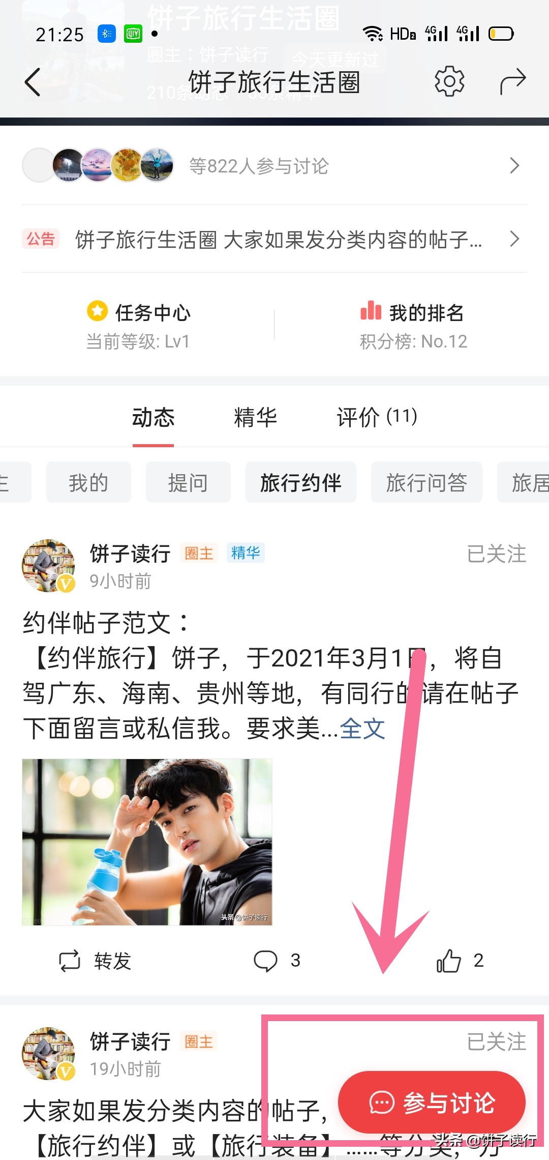 点击“饼子旅行生活圈”就可以进入圈子和大家一起闲聊!