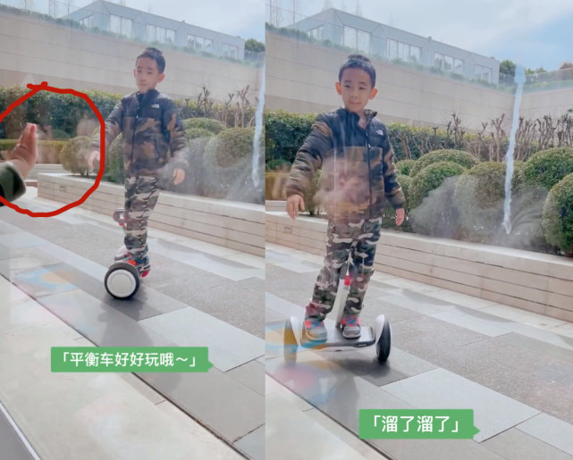 原来在和弟弟打完招呼后,Jasper就“无情”地抛下了对方,踩着平衡车就开开心心地玩儿去了。应采儿还应景地配上文字“平衡车好好玩哦”。