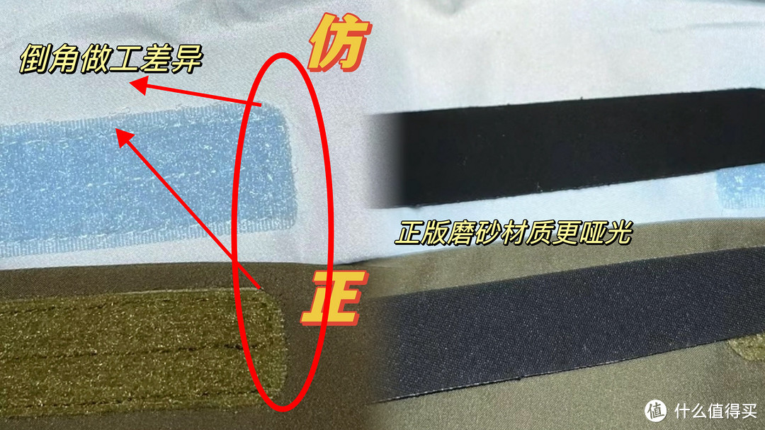 1️⃣走线做工能看出差距,魔术贴的边缘倒角,正品会更丝滑,仿版会显得生硬,❗️但是一些高版本,这种细节已经做到很接近了(太恐怖。。。)