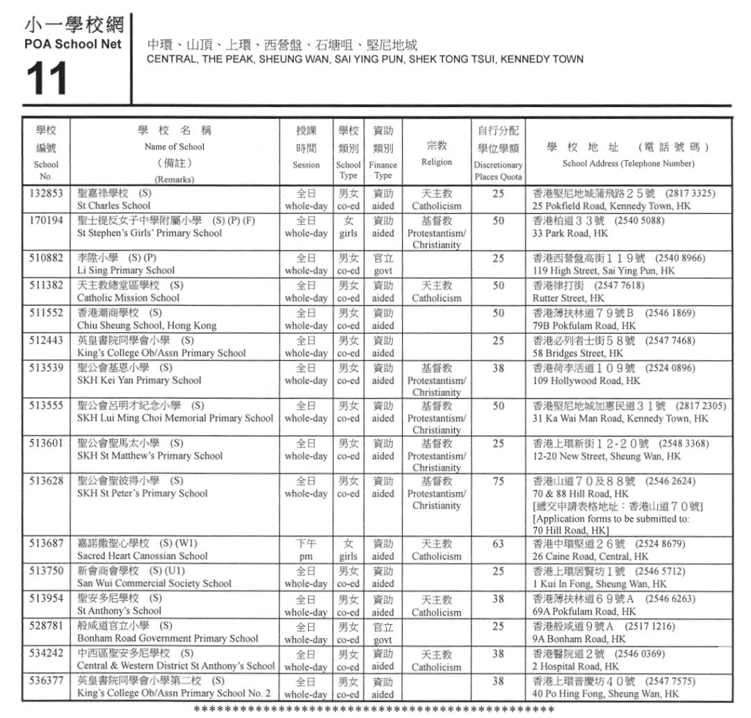 其中港岛区的11、12校网及九龙城区41、34校网是四大名校网,香港大部分著名小学就分布在此。